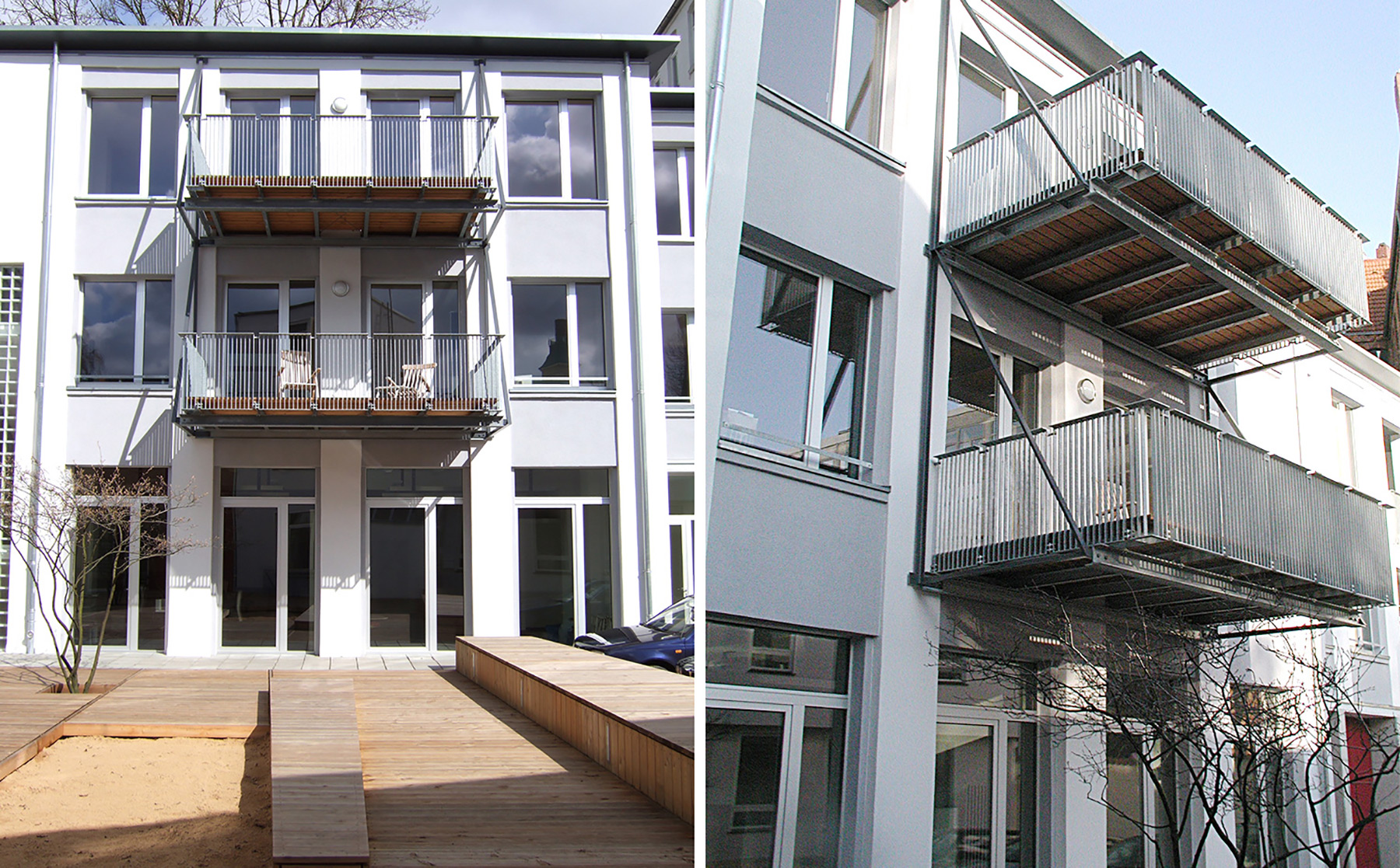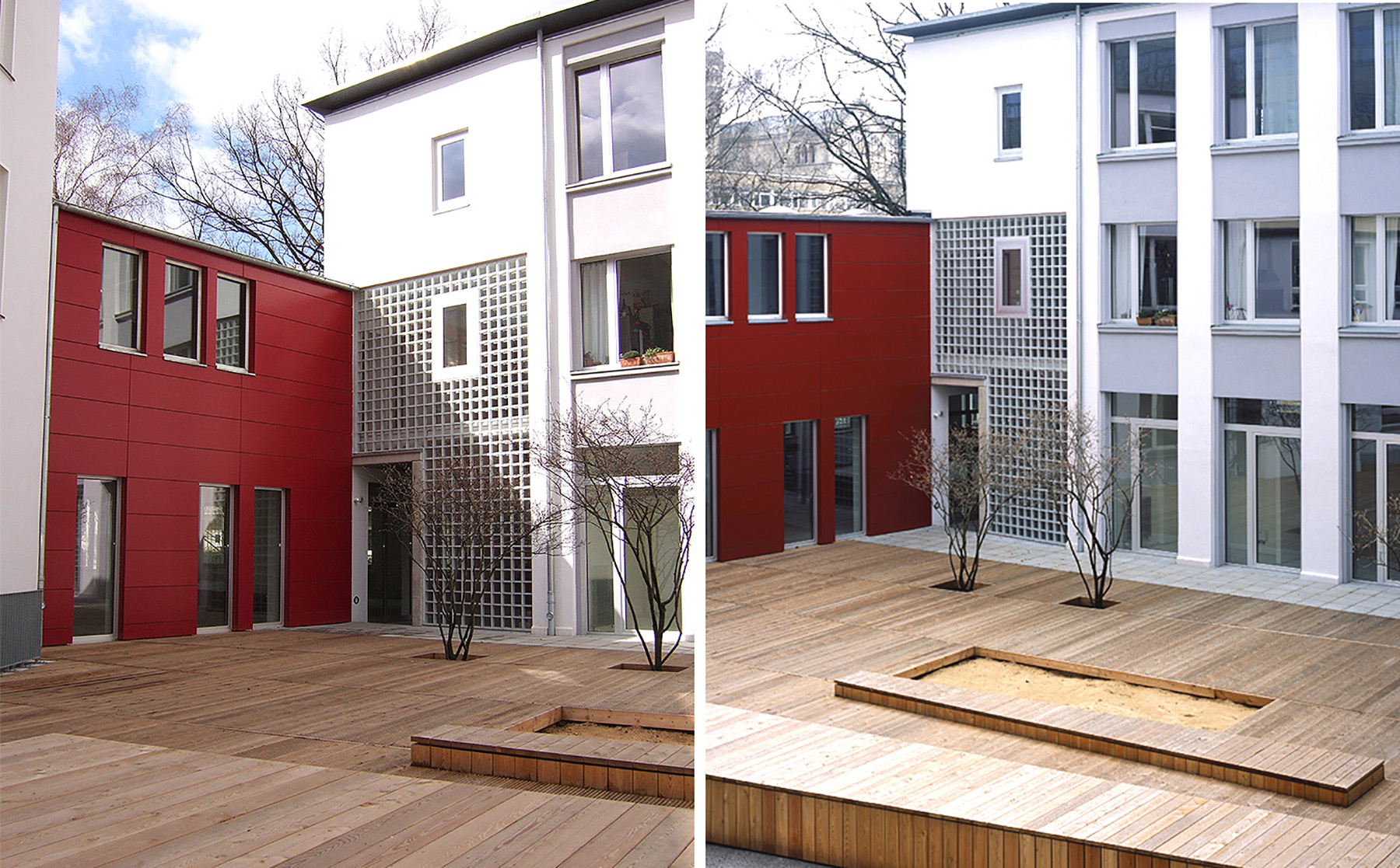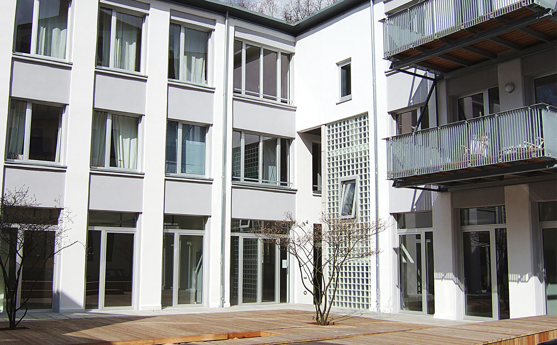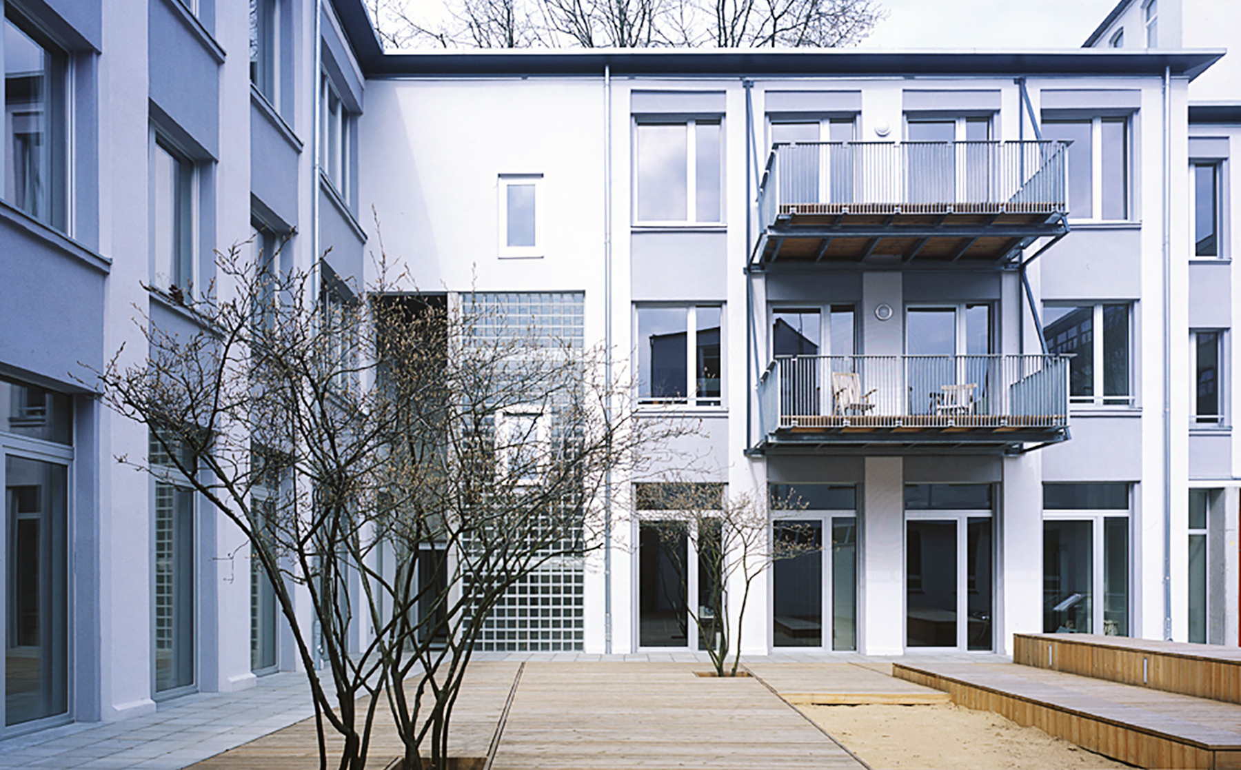 Die Qualität der schlichten Fassadengliederung wurde durch behutsame Eingriffe verstärkt, die vorhandene Substanz grundlegend saniert, Haustechnik und Energieverbrauch wurden zeitgemäß optimiert.