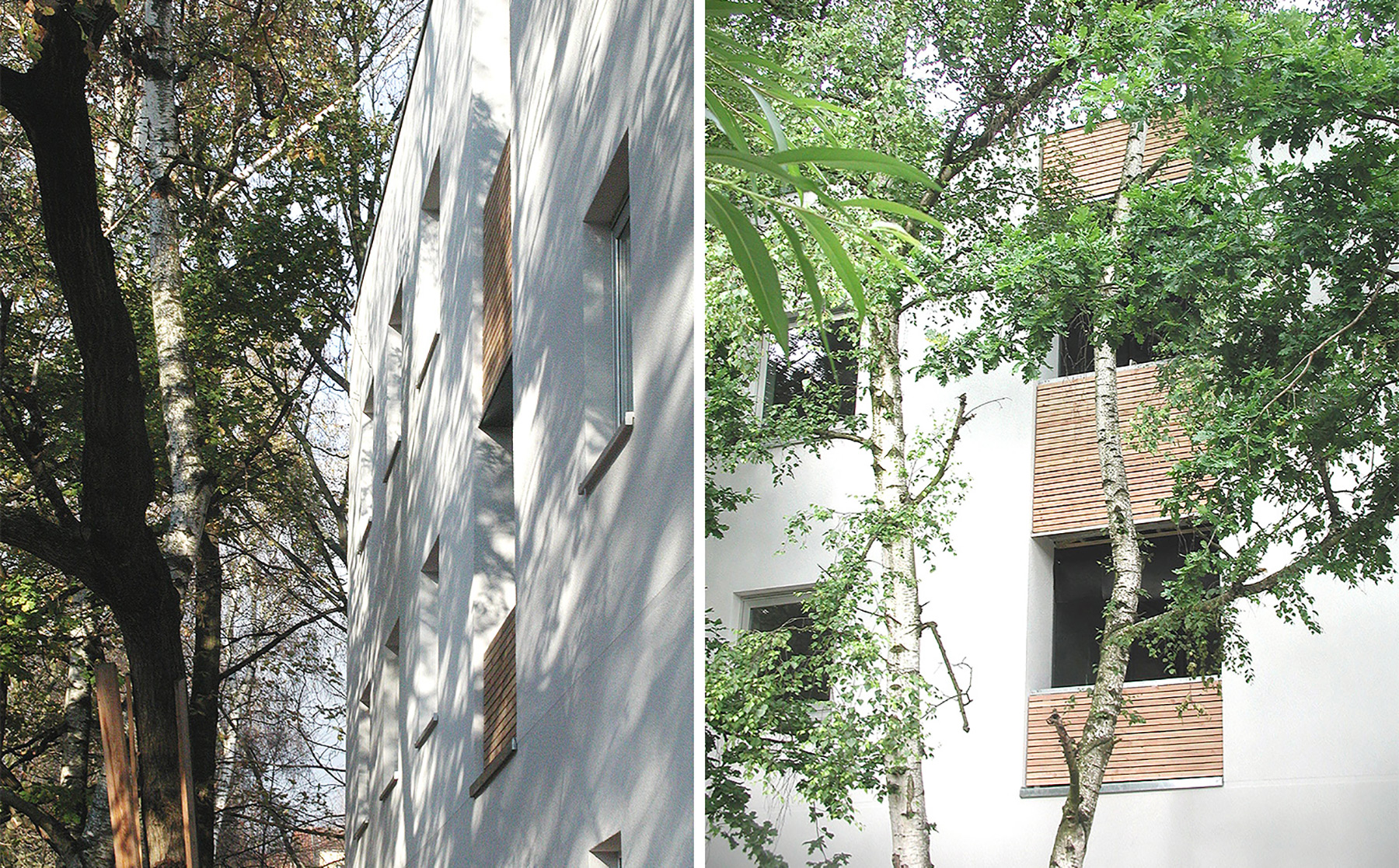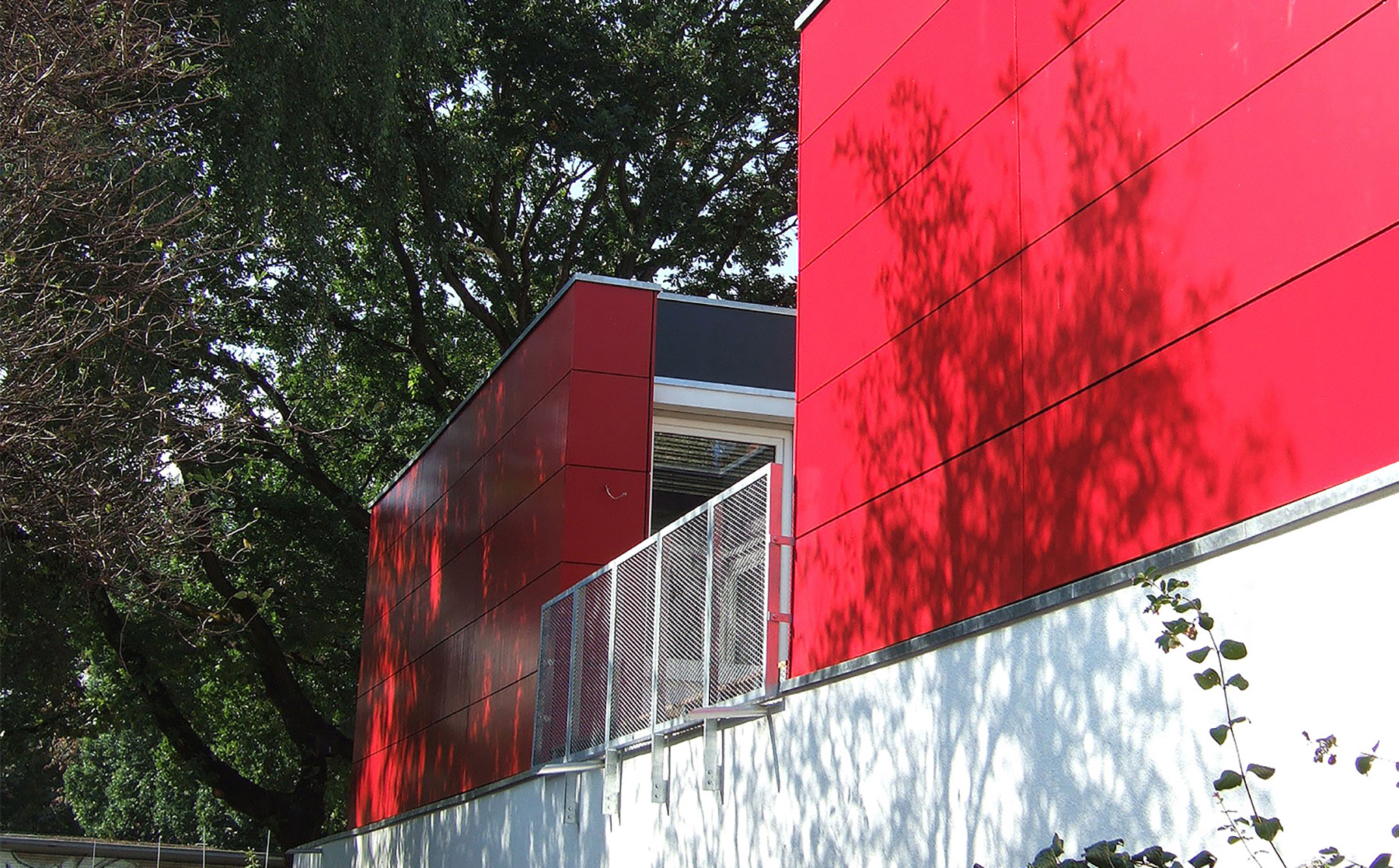 Als Material für die hinterlüftete Fassade kamen lackierte Sperrholztafeln zum Einsatz.