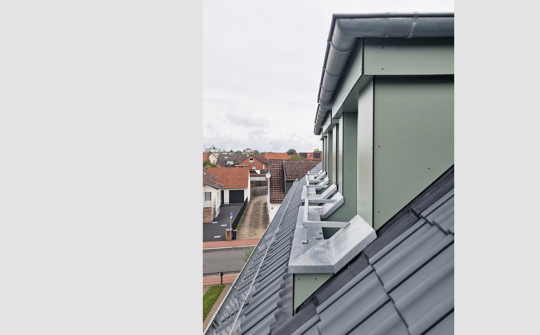 Im Zuge der Baumaßnahme wurde das gesamte Steildach saniert und die Außenhülle der bestehenden Dachgauben ertüchtigt. Das neu zu deckende Dach wurde entsprechend der Bundesförderung für effiziente Gebäude hoch wärmegedämmt, die Dachgeschosswohnungen erreichen damit nun den Neubaustandard.